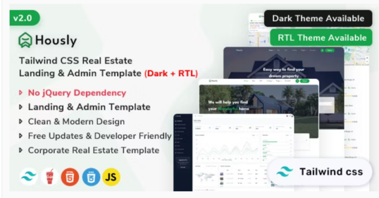 Hously is one of The Best Real Estate Responsive HTML5 Templates built with the Tailwind CSS framework. Every section of the template is 100% customizable according to your needs. It is supported on all modern & old browsers, tablets, and mobile devices. Hously is a high-quality and well-organized HTML Template specially designed to fit all the needs of a Real Estate Business. Hously supported Dark Theme and Light Theme also LTR & RTL Theme. It’s a clean and complete solution for all sorts of real estate property agencies and agents, companies, and businesses dealing with real estate in several ways.